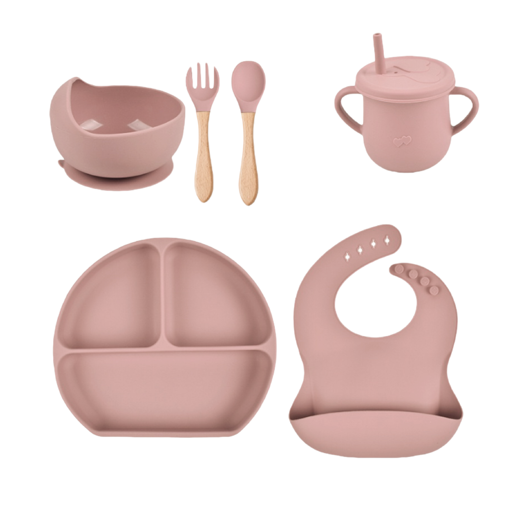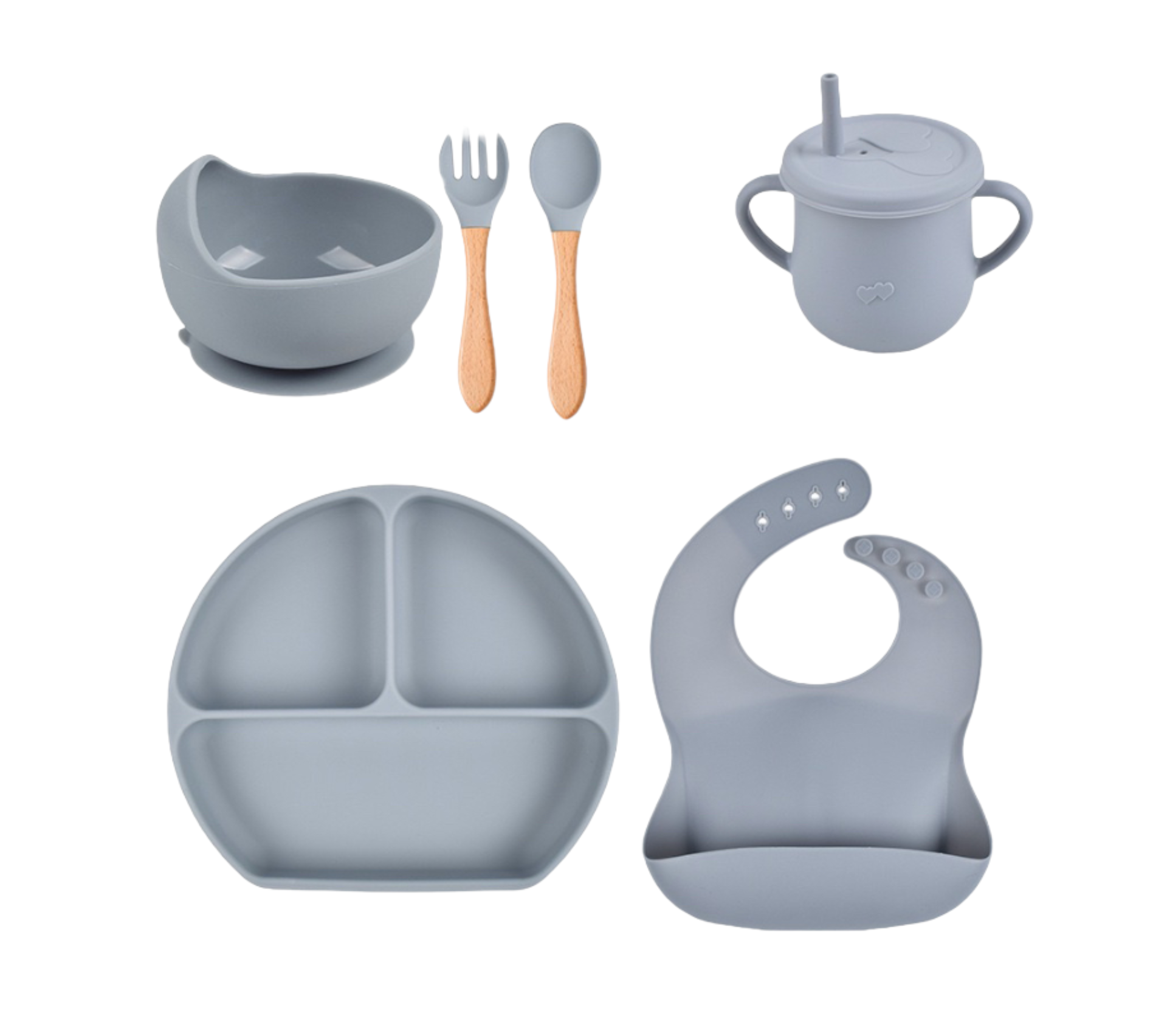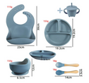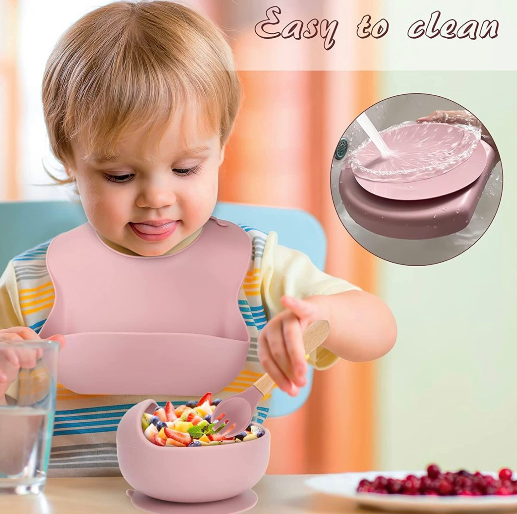 All-in-One Feeding Set: Ziza toddler self eating utensils kit includes: 1 x silicone divided suction plate, 1 x suction bowl, 1 x feeding bib with...
